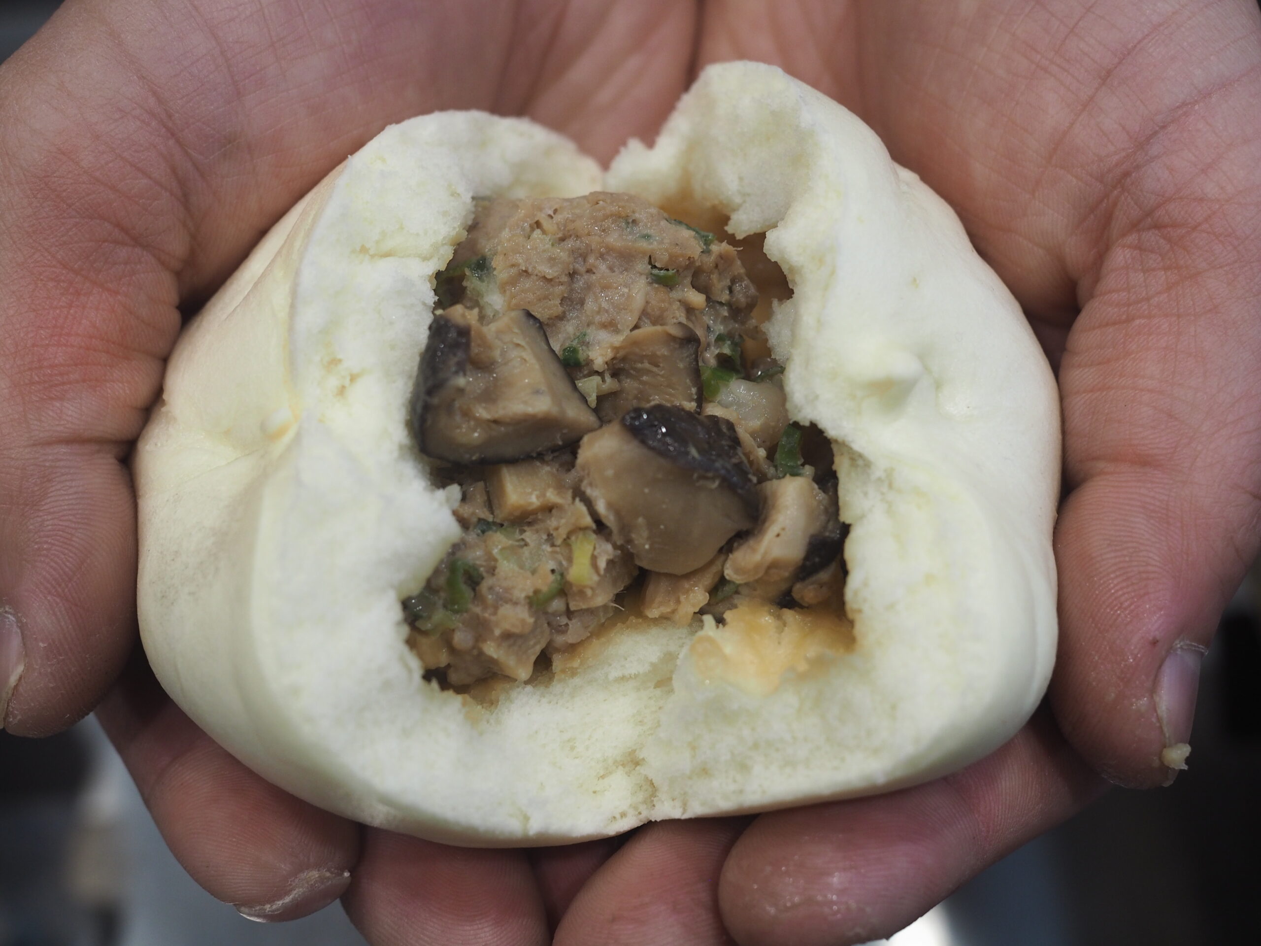 近藤さんは専門店で修行し技術習得。その後も中華まんの皮と中身の試作を繰り返しながら、2025 年には自宅の敷地内に惣菜製造業の許可施設である加工場を整備するなど、商品化に向けて準備を進めてきました。そして、構想から 9 年。原木椎茸をメインに山の幸を具材とした椎茸肉まん『山包(やまづつみ)』が誕生。【近藤しいたけ園】のプロデュースによる新事業として新たに【山を包む】の屋号で出店販売を行っています。